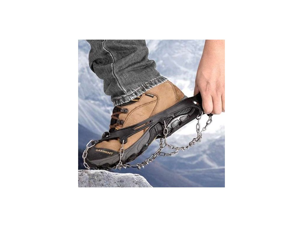 Nerezové reťaze - vyrobené z ocele. Sú odolné voči hrdzi a korózii. Stačí natiahnuť elastický golier a nasadiť na podrážku topánky. Naše madlá obuv nepoškodia, pretože perfektne priľnú k topánke.